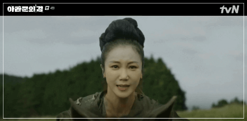부상만 남겨진 타곤 상황은 위기에 봉착하게 됩니다. 타곤은 피를 흘리며 때사리 촌을 내려가게 되고 그 뒤를 따라왔던 황후는 타곤의 상태를 보며 몸부터 숨기고 왕후가 해결한다 합니다.