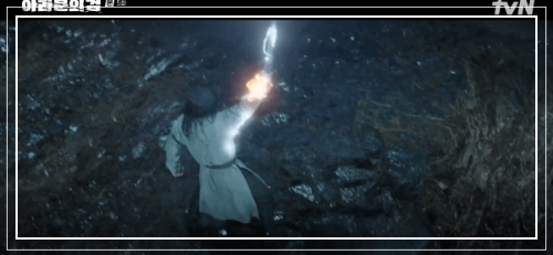그렇게 얼마 뒤 철검의 성능을 확인할 순간이 오는데 양차가 탄야 주변에 위험하게 만든다며 죽이러 왔고, 그걸 은섬과 싸우면서 양차의 검을 박살을 내버리죠. 그 순간 번개가 내리치며 철검으로 떨어지게 되고, 은섭의 팔에 낙뢰흔 흉터가 생기게 됩니다. 은섬은 칼을 높게 들며 이 나이신기이자 아라문의 해슬라가 되겠다고 외치며 5회는 마치게 됩니다.
