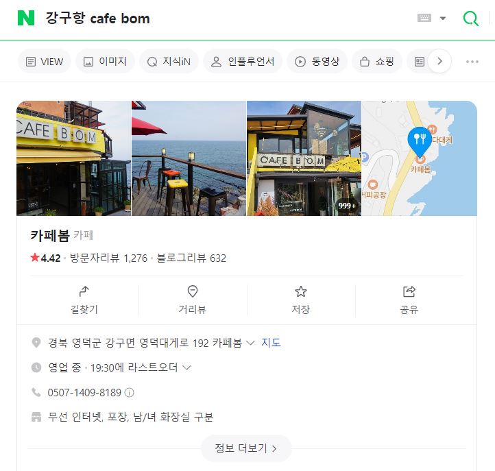 주소는 경북 영덕군 강구면 영덕대게로 192 카페봄이며, 이 근처에 대게를 드시러 오시거나, 해맞이공원 쪽으로 가시는 분들 혹은 연인끼리 여행 중이라면 중간에 한번 들려 보시는 걸 추천드립니다.