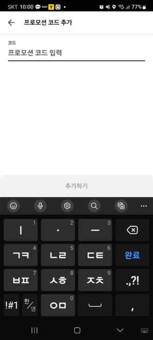- 여기서 프로모션 쿠폰을 입력합니다.