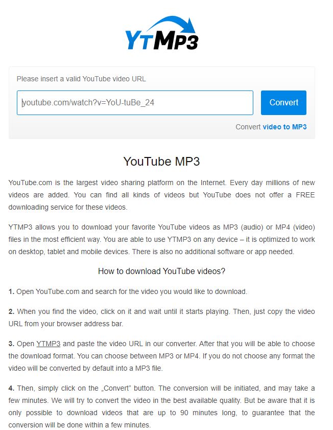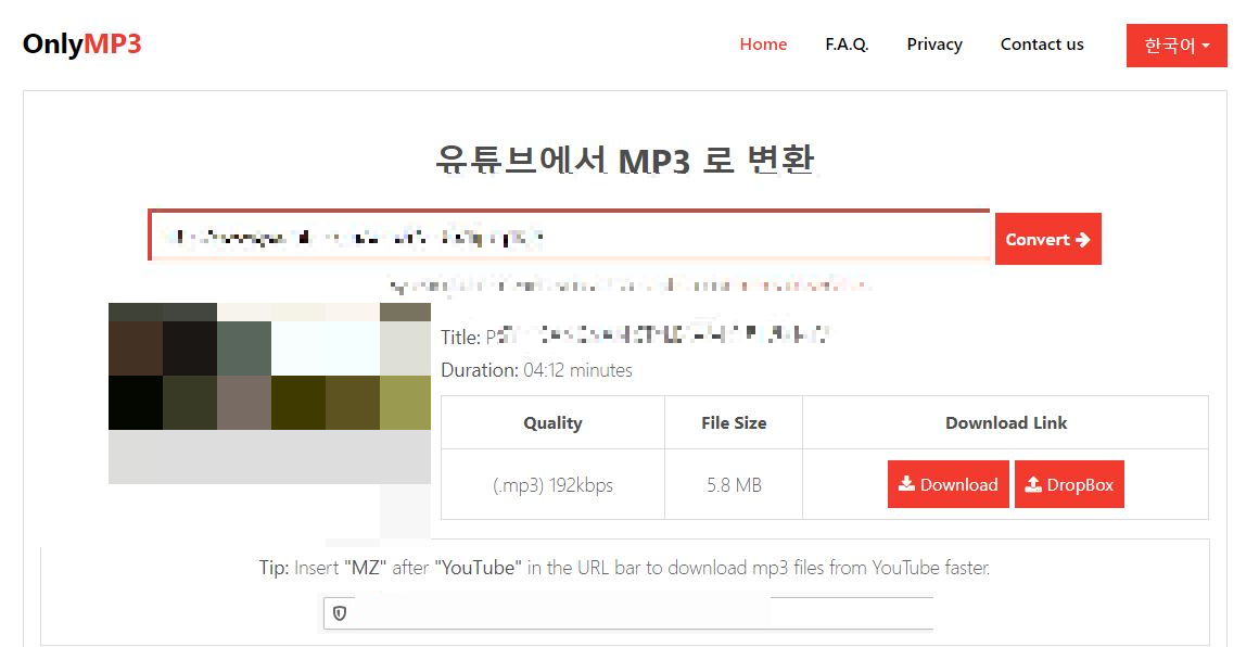 마지막으로 알려드리는 사이트는 ytMP3입니다. 역시 이 사이트 또한 회원가입 절차가 필요 없으며, 구글 검색에 나타나는 맨 상단에 뜨는 사이트를 활용합니다. 조금 단점이라고 이야기드리자면 영문으로 되어 있어서 컴퓨터 잘 모르시는 분들은 괜히 다가서는 게 걱정되실 거라 생각되지만 전혀 불편한 거 없습니다. 위에 내용을 잘 따라오셨다면 동일하게 위에 과정과 똑같이 해주시면 됩니다.