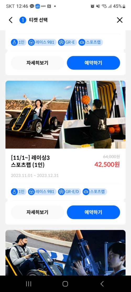 - 레이스 981 2회/ 랩 981 스포츠랩 2회 x2인/ 랩 981 링 고/ 1회 x2인/ 아레나 1회 x2인/ 하늘그네 1회 x2인