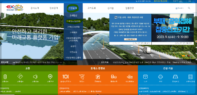 한국도로공사 사이트에 접속을 합니다. (https://www.ex.co.kr/site/com/pageProcess.do)