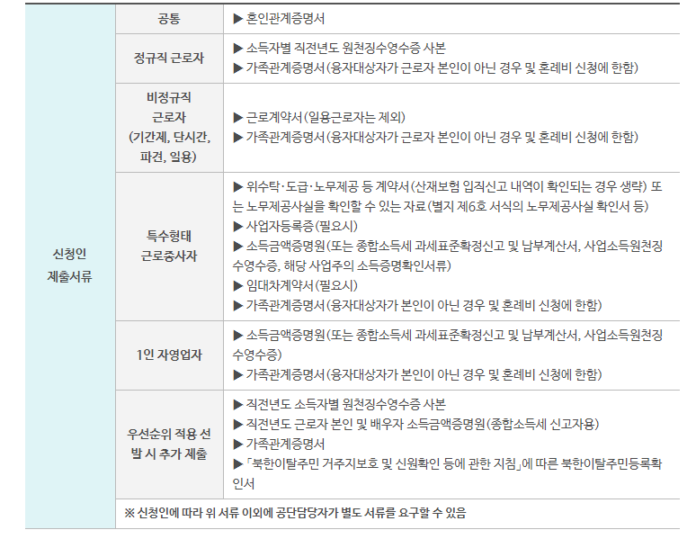 - 일용근로자: 신청일 이전 90일 이내에 45일 이상 고용보험에 가입한 사람입니다.