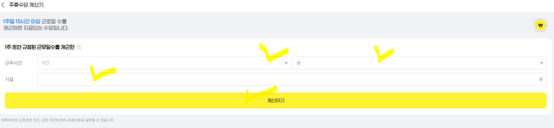 우선 우리가 쉽게 포털 사이트 검색만 하더라도 뜨는 "주휴수당 계산기"입니다. 아래 링크를 통해 확인하실 수 있습니다.